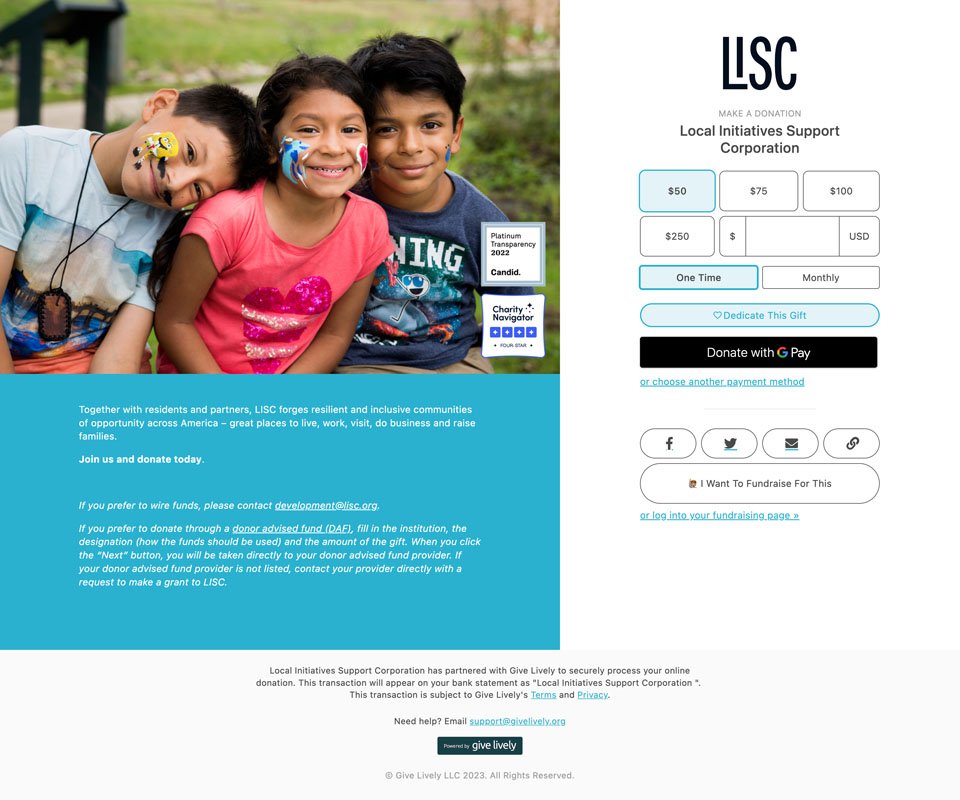 LISC's GiveLively Donation Experience