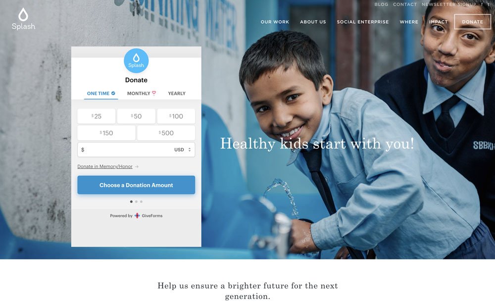 Splash's Give Forms Donate Page