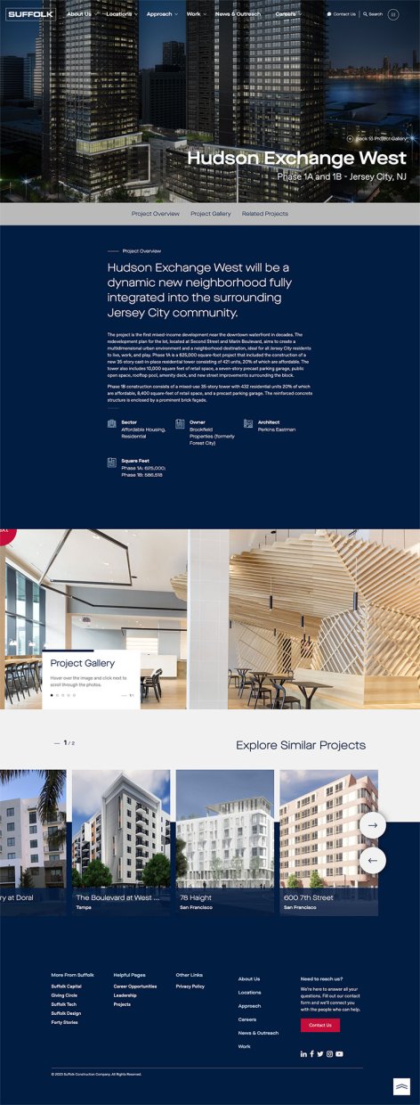 GCS||Sigal added a feature video and arranged their imagery in a gradient from colorful completed project photos, gradually blending into black and white progress photos as you scroll down. Suffolk and Arco Murray also embraced a very visually heavy approach.