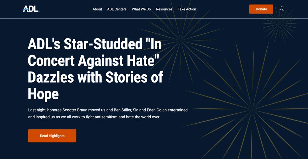 The ADL is highlighting what sounds like an amazing event they hosted called "In Concert Against Hate," with Ben Stiller, Sia, and Eden Golan providing some entertainment.